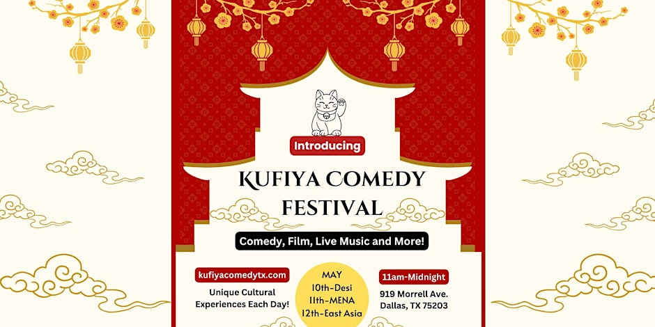 After a year of successful comedy shows for the community, Kufiya Comedy is proud to present its first ever Kufiya Comedy Festival! A three day multicultural immersive experience in Dallas, TX; showcasing a curated selection of international comedians and short films, cultural performances, and more!